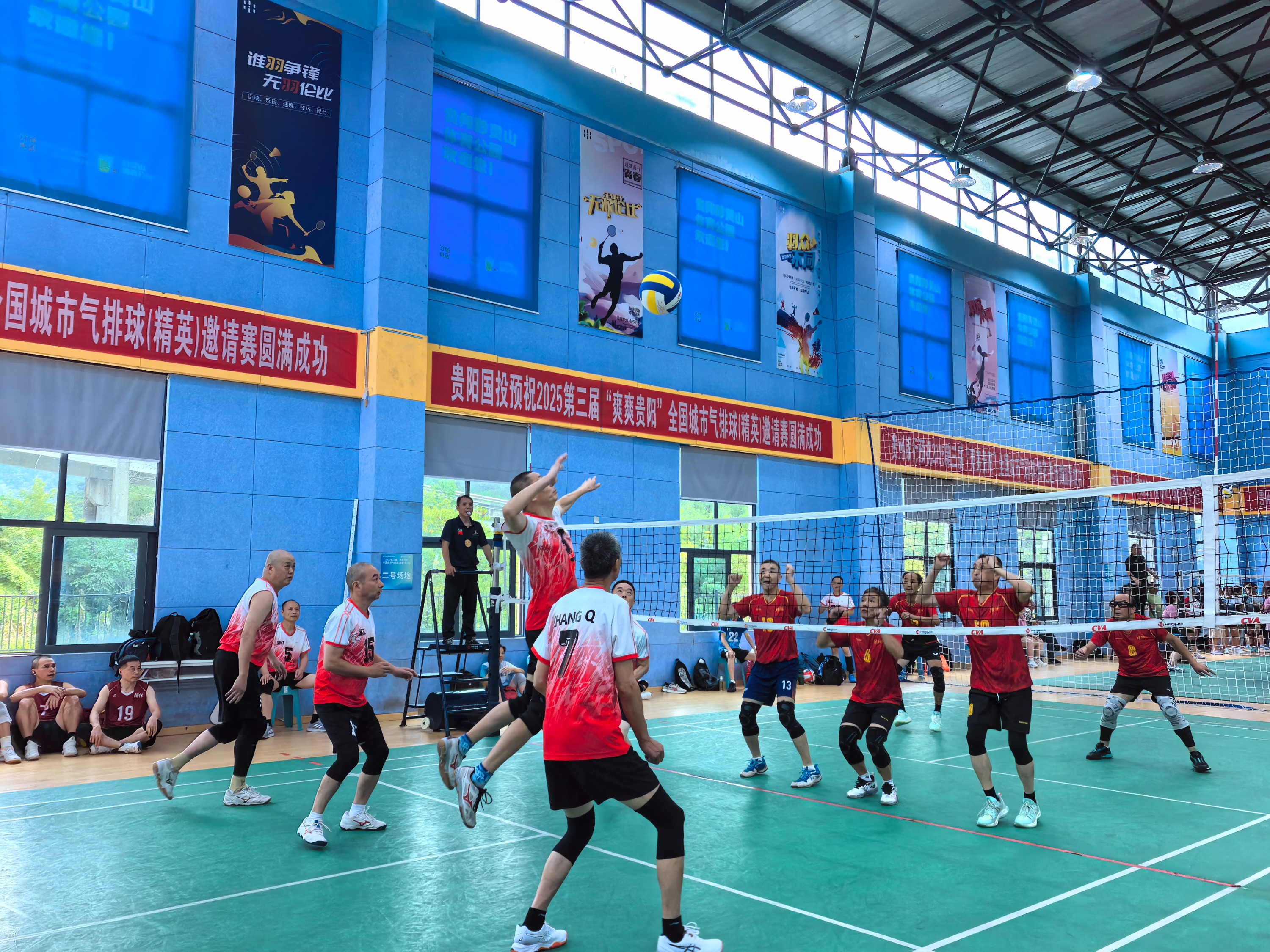本次赛事得到了相关部门及单位的大力支持,贵阳市体育总会秘书处、云岩区文体广电旅游局、贵阳市国有资产投资管理公司、贵阳市排球协会、贵州康体旅投发展有限公司、贵州银行股份有限公司贵阳花溪支行、贵阳市农业农垦投资发展集团有限公司、贵州汇禾刺梨生物科技有限公司相关领导及嘉宾共同见证赛事启幕。随着裁判哨响,老年男子组、老年女子组率先开赛。运动员们以饱满的精神状态投入首轮对决,传球如行云流水,扣杀势如破竹,场边观众的呐喊声与黔灵山的自然风光交织,勾勒出“体育+旅游”的生动画卷。