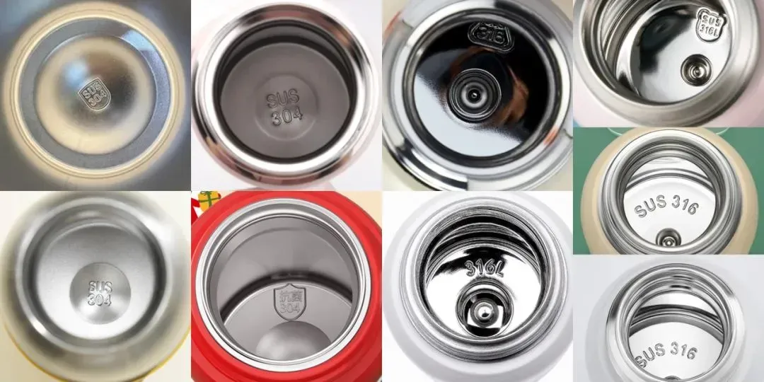 与食品接触部位的材质,不锈钢部分应看底部是否有“304”“316”钢印标识;有塑料、橡胶等部件与食品接触的,如吸管、盖子等,还应标识塑料等材质;