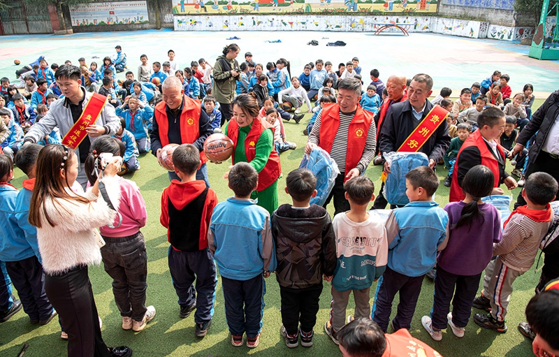 来自盘州市的爱心人士和爱心企业,向孩子们捐赠了体育用品、学习用品和衣物等。