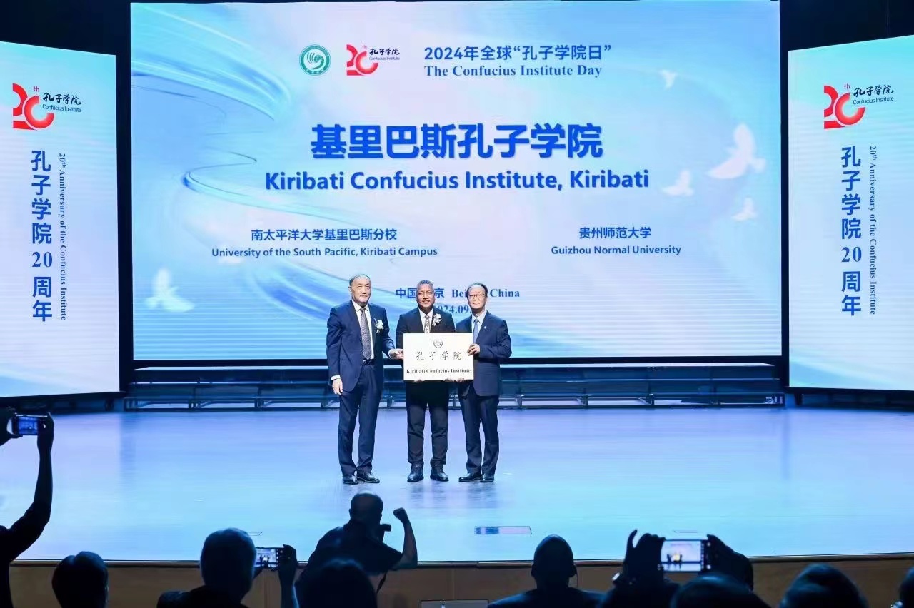 据悉,基里巴斯孔子学院由贵州师范大学与南太平洋大学基里巴斯分校共同建设,是贵州省在大洋洲的首家孔子学院。双方将以服务于当地的本土需求为主线,力争将基里巴斯孔子学院建成中文教学、文化交流、科学研究、产业合作全方位协同发展,培养复合型中文专业人才为特色的示范性孔子学院。
