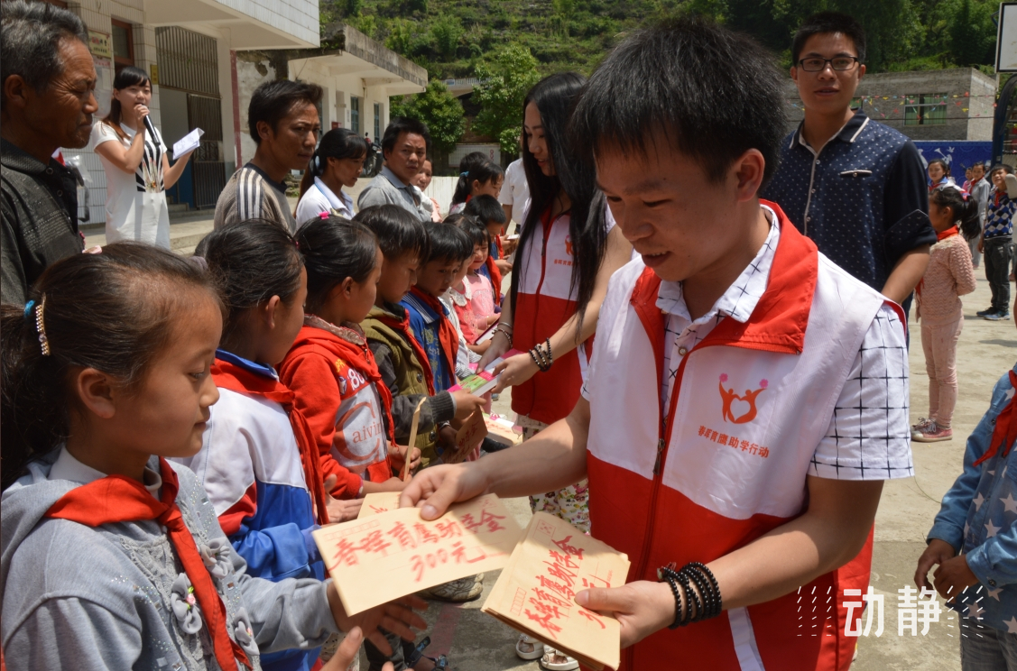 杨秀祥把助学金寄到学生手上:“这是我们从广州带来的,希望你努力学习。”