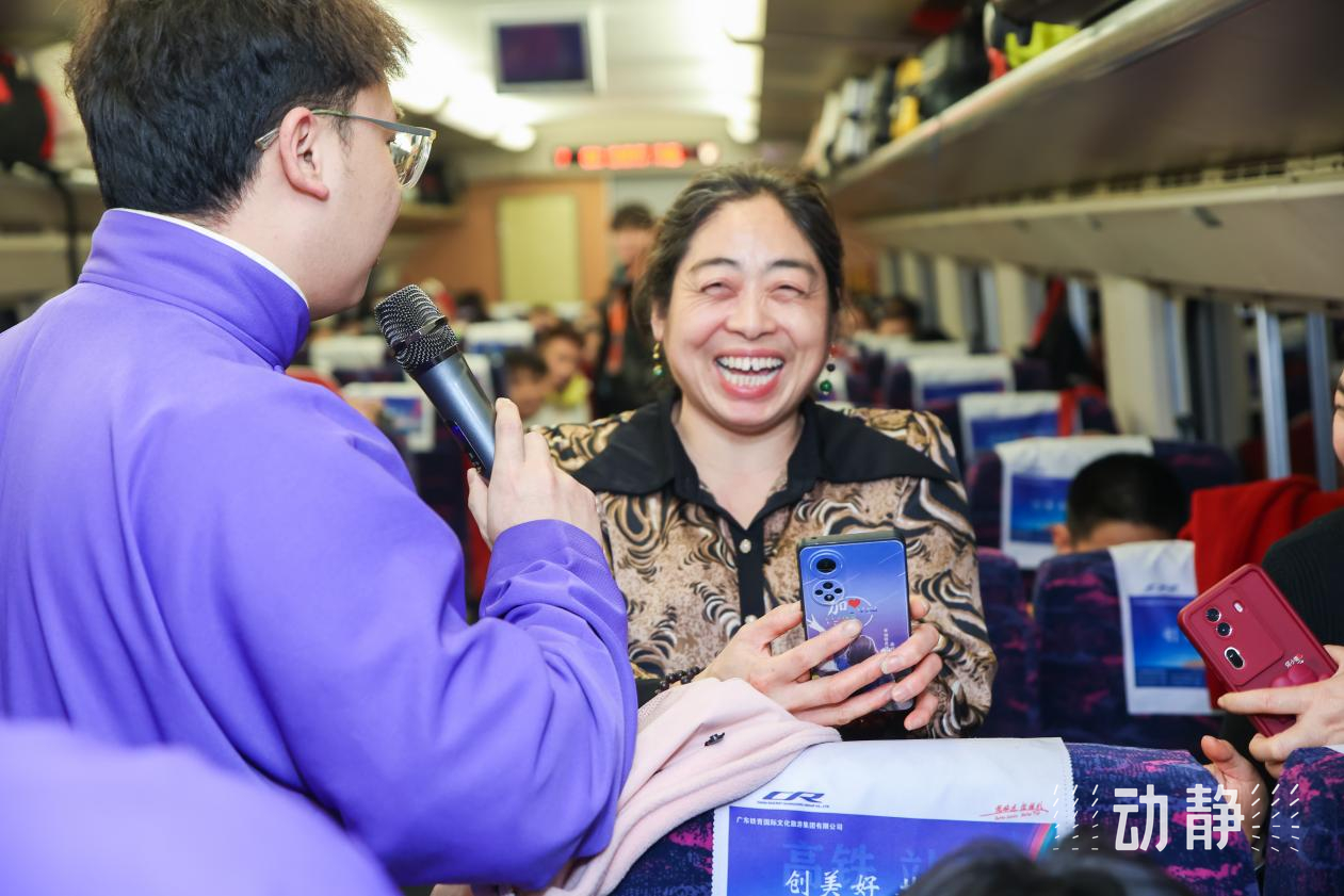 带着故事,带着期盼,“团圆号”春节直通车从广州南站出发。在南方小年这天,驶向家的方向,移动的车厢变成晚会现场,在外打拼一年的老乡们,聚在一起,猜灯谜、看相声。