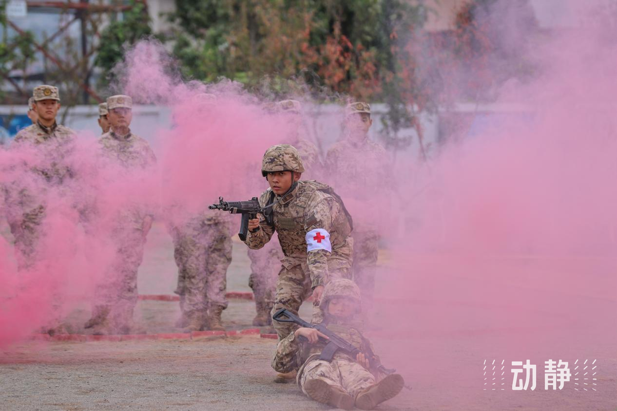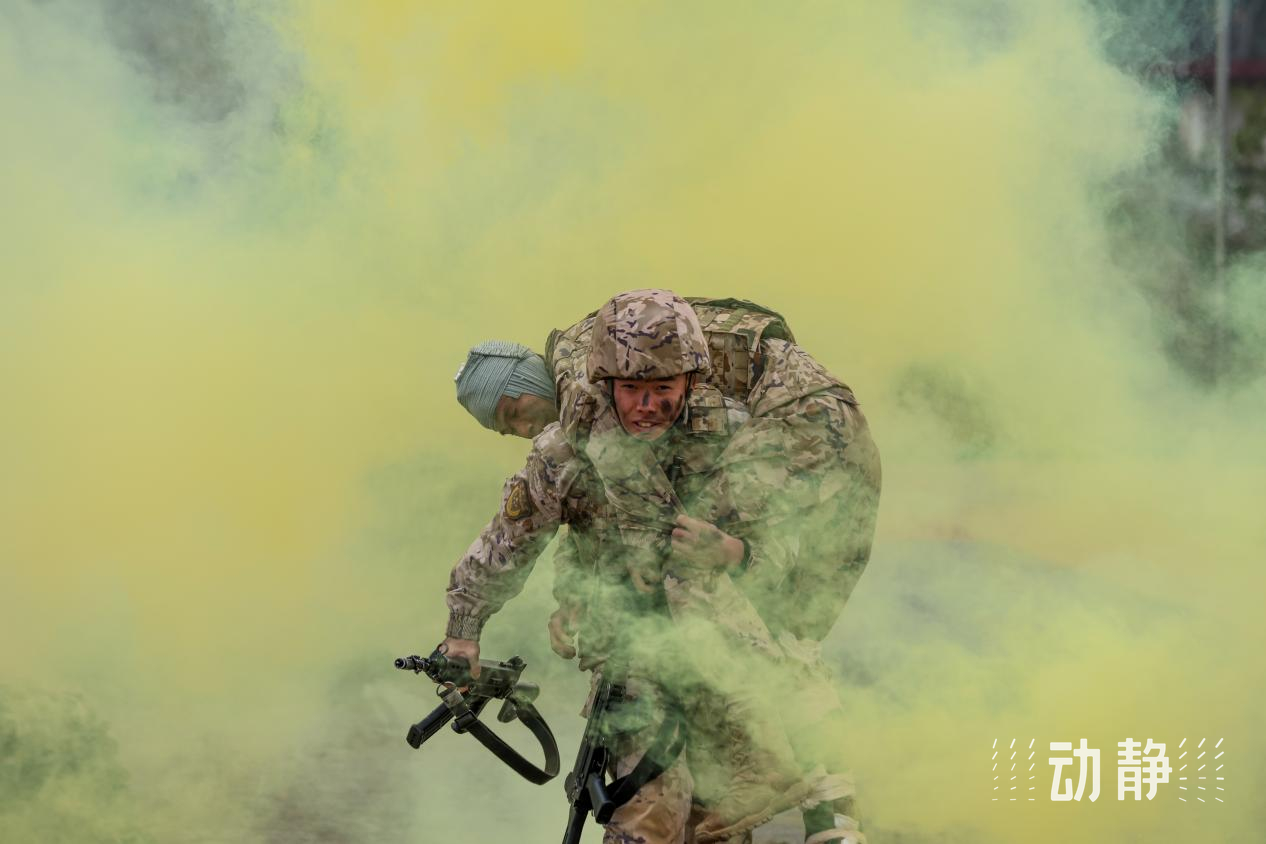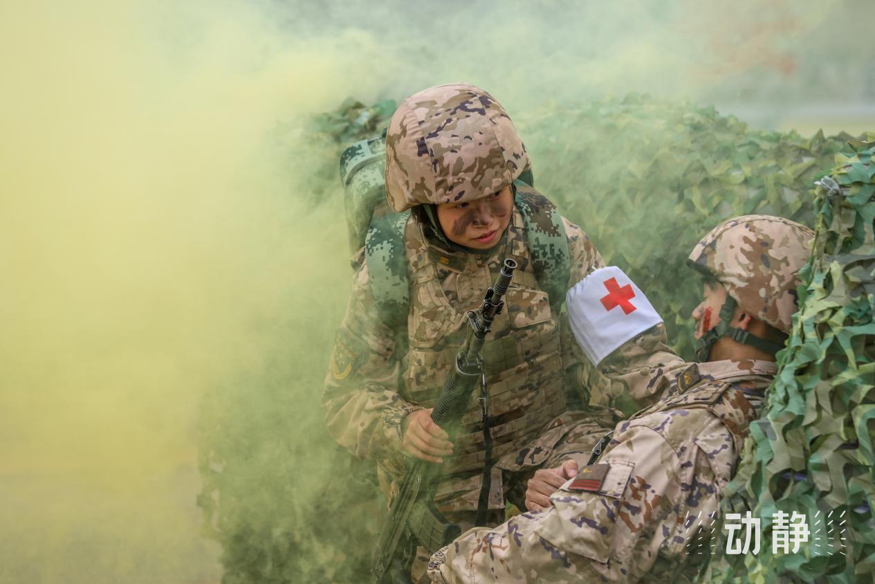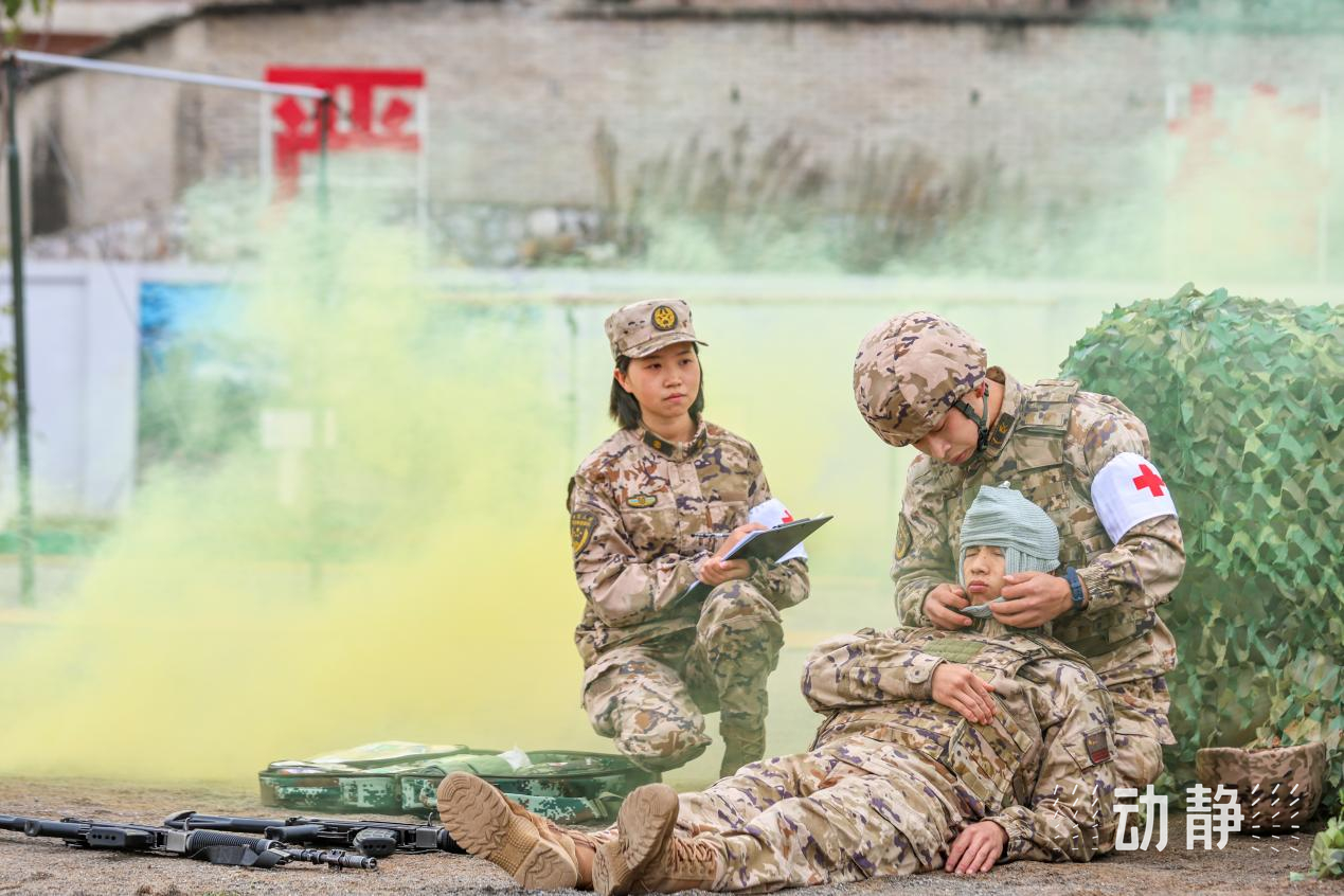 “接上级通报,前方火线出现多名‘伤员’,救护组立即前出!”随着考官一声令下,卫勤救护小组迅速跃进,通过30米S型弯道、穿过10米低桩网到达一线展开救治……