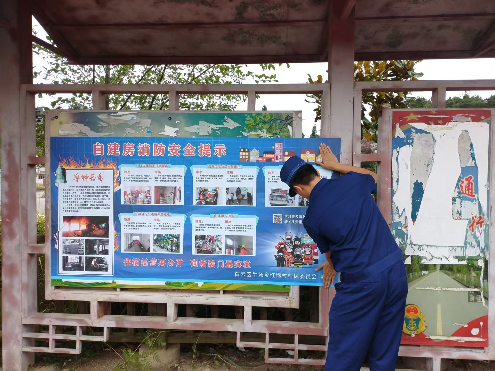 白云大队还统一制作了《自建房消防安全提示》挂画,包含“住宿经营要分开、砌墙装门最实在”“严禁电动自行车违规停放充电”等核心提示内容。大队依托下沉帮扶工作,联合各乡镇(街道)、基层网格力量,深入辖区自建房集中区域,在每个村居显眼位置进行张贴,确保消防安全知识全方位覆盖。同时,大队进行入户宣传,详细讲解消防安全知识,并发放消防宣传资料,向居民讲解如何排查家庭消防安全隐患、处置初期火灾、紧急疏散逃生等内容,现场解答居民日常生活中遇到的消防问题。