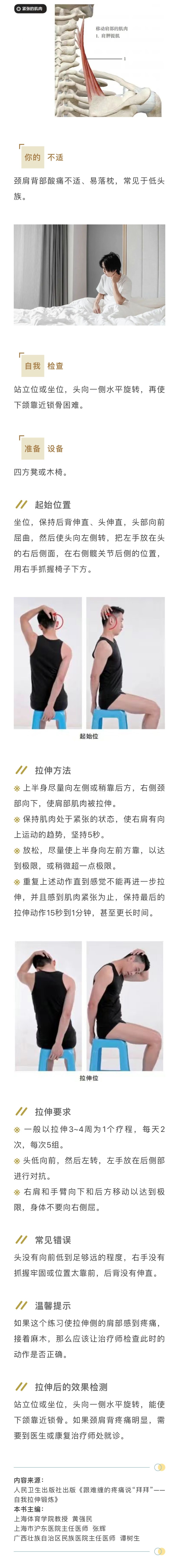 动静健康 | 颈肩背部酸痛不适、易落枕怎么办?教你一个自我拉伸锻炼法!