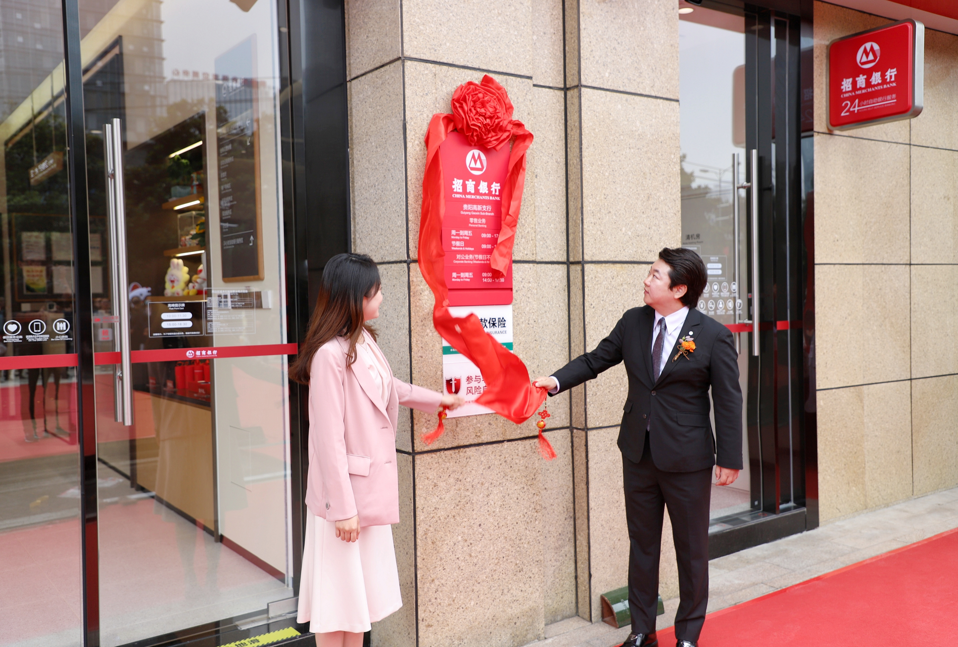 招商银行贵阳分行胡津行长和高新支行袁惠丽行长一起为开业揭牌。