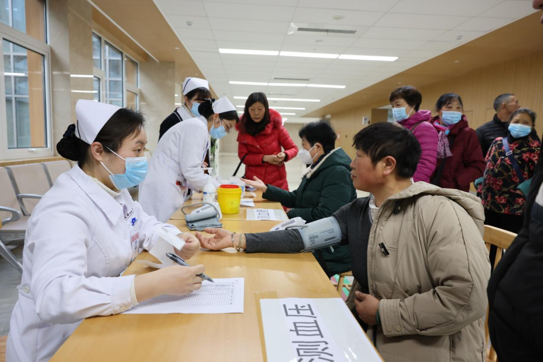 图 中山一院贵州医院(贵医附院贵安院区)周三门诊开放日,护理人员为患者免费测量血压血糖