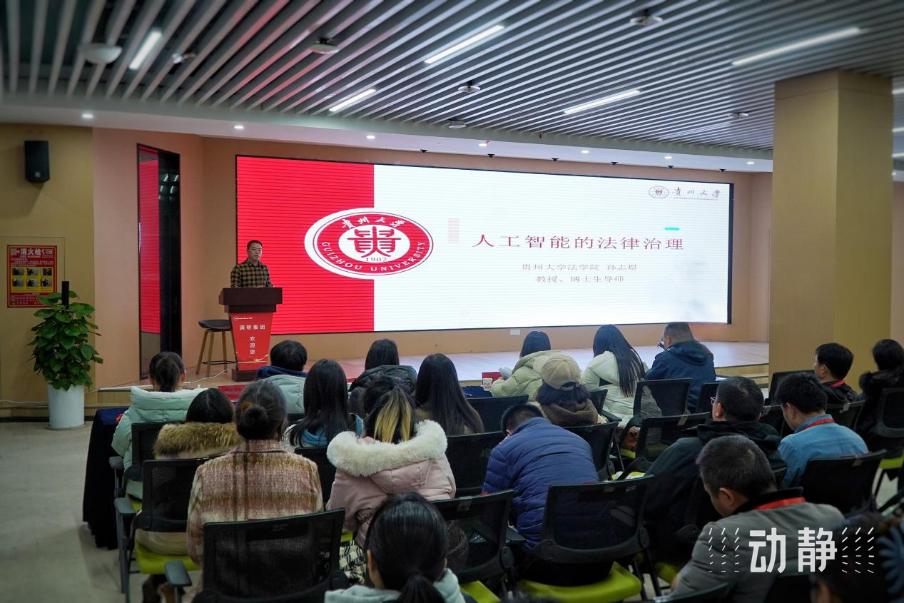 12月12日,“E法黔行 普法有我”2024-2025贵州省网络普法巡回宣讲活动(第二场)在贵阳举行。贵州大学法学院副院长、教授、博士生导师孙志煜以“人工智能的法律治理”为题进行宣讲。