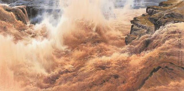 此外,作品《天风卷巨澜》《山高水长》分别以中国画的写意精神与装饰意味描绘了滔滔黄河与巍巍青山,表现了黄河精神、绿水青山的主题思想。
