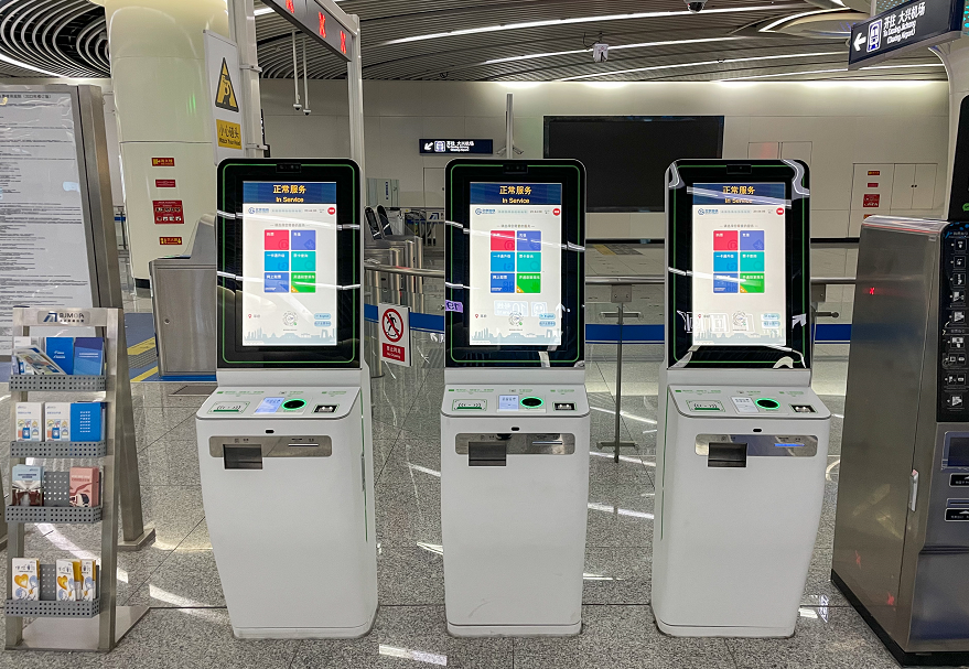 记者在地铁大兴机场线草桥站发现,进站闸机外多出了几部新的自动售票机。和其他售票机有所不同,新的售票机屏幕更大,除了可以实现购票、充值、网上取票等常规操作之外,页面上多了一个“开通刷掌乘车”的选项。在屏幕下方,还多出了一个圆形的手掌识别区域,大小与手机无线充电器相似。