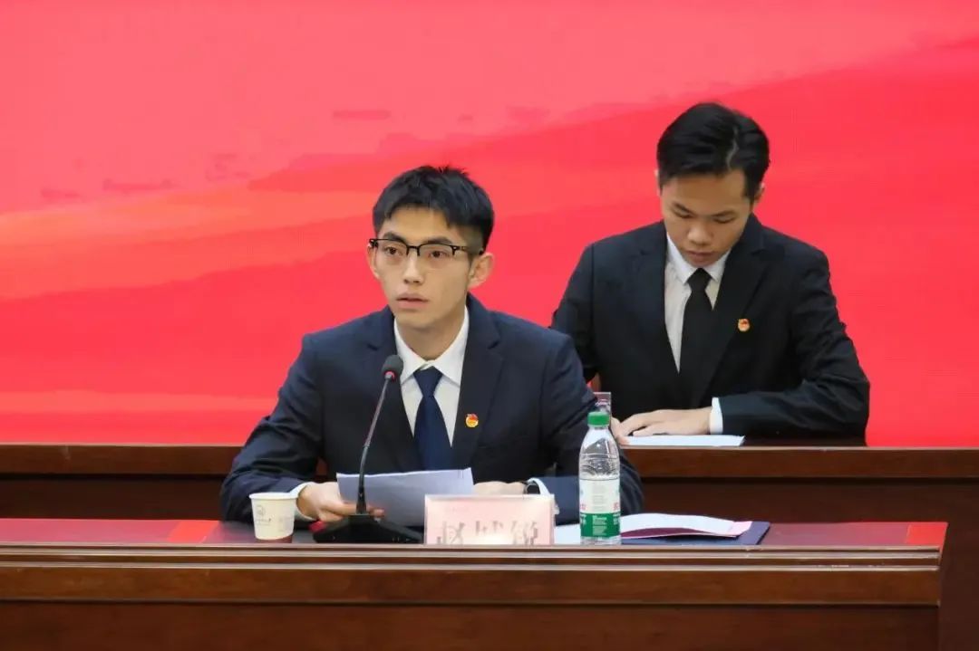 省学生联合会驻会主席赵城锐代表共青团贵州省委、贵州省学生联合会向大会发言。