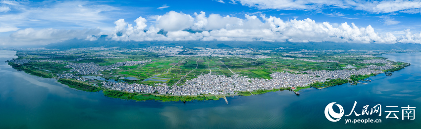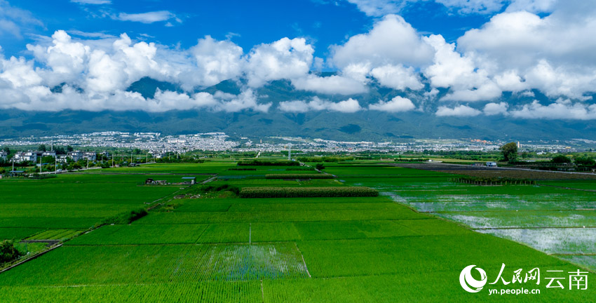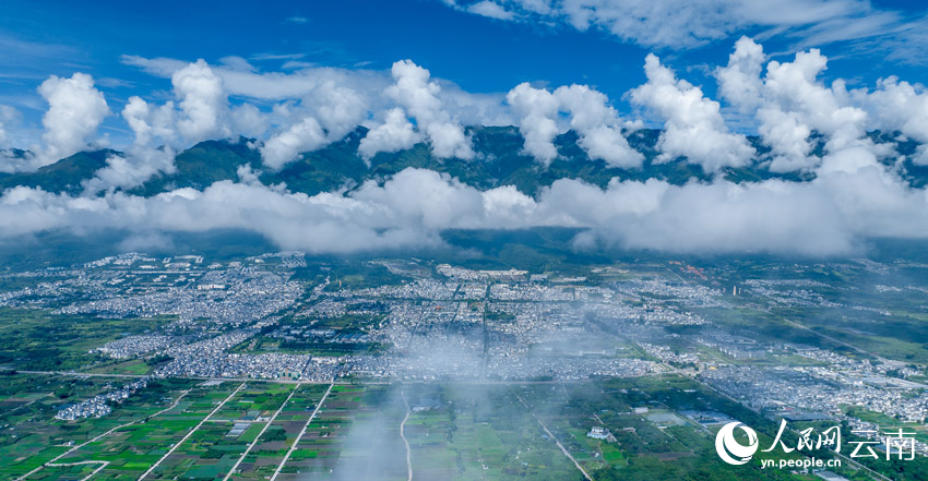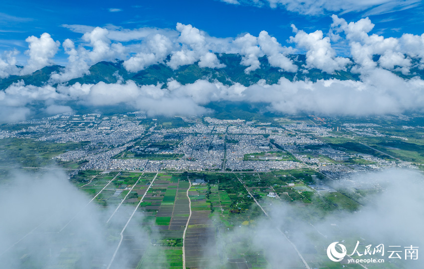 云遮雾绕的苍山和洱海之畔的田园美景。赵渝摄