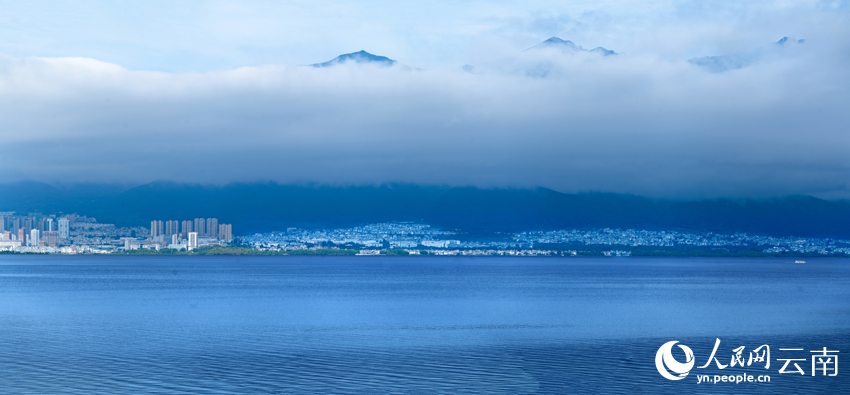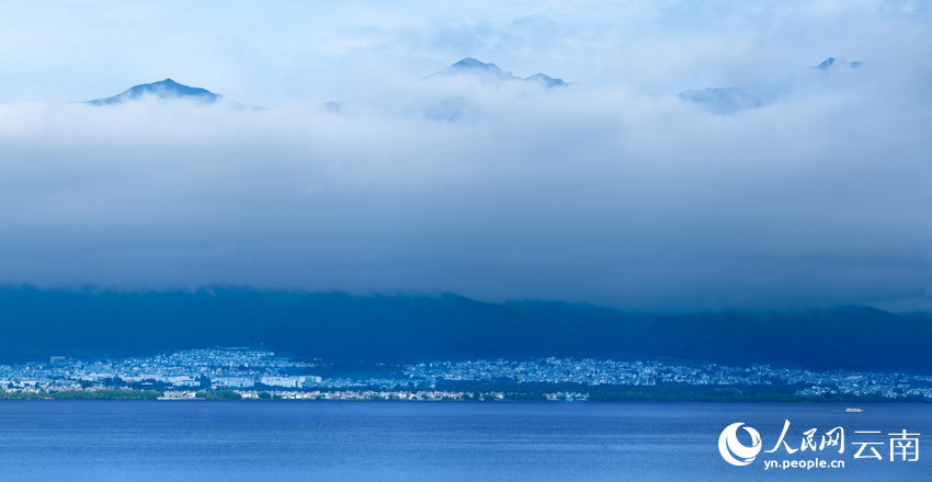 人民网昆明7月5日电 (记者符皓)7月4日上午,云南大理苍山被浓密的云雾覆盖,只露出点点山尖,在云遮雾绕中宛若仙境。一场雨过后,太阳出来,云雾散开,苍山脚下、洱海之畔,一望无垠的山水田园美景浮现眼前。