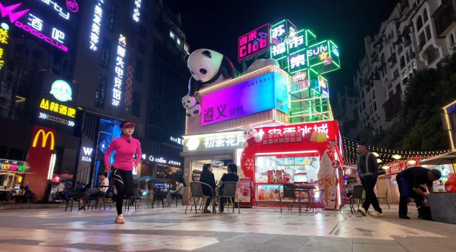 苏福商圈是遵义年轻人的潮玩地。不论是白天还是夜晚,整个商圈都有熙熙攘攘的人群。白天可以来citywalk,这边有很多奶咖店、蛋糕店、商城可以打卡。