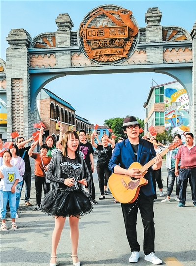 村民们自发组建多支乐队,韩强与朋友们的“老男孩乐队”玩起了摇滚。小镇活动必有农民乐手登台献艺。“既传文化,又聚人气。”周志学说。