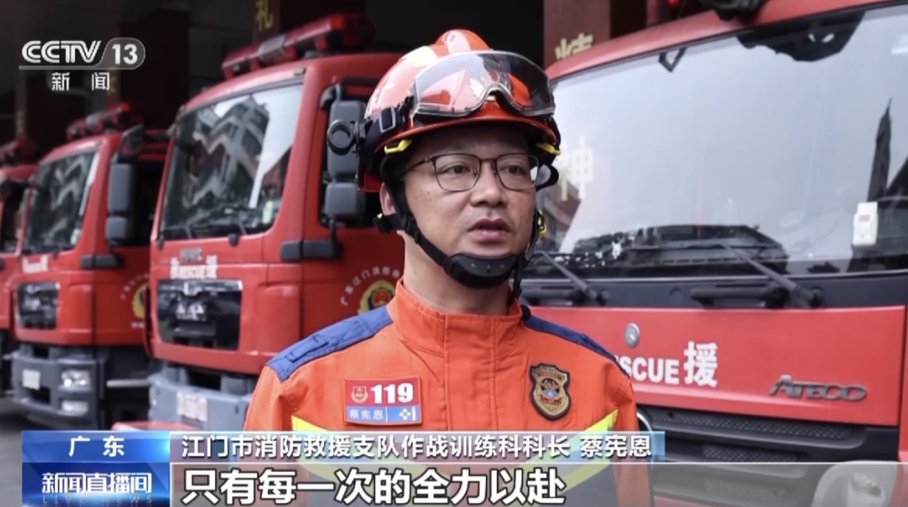 广东省江门市消防救援支队作战训练科科长 蔡宪恩:我们要把每场演练都当作实战,只有每一次的全力以赴,才能在真正的灾难面前为生命多争取一份希望。