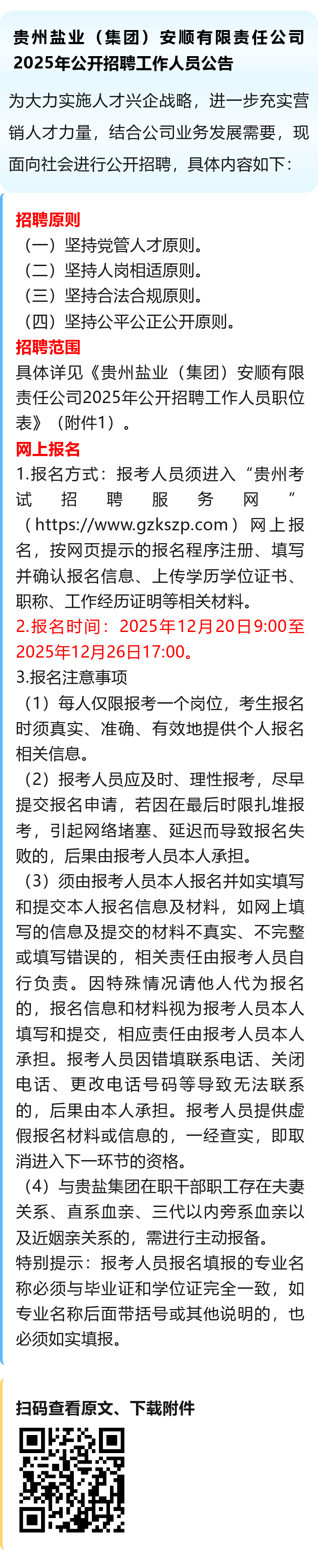 贵州盐业(集团)安顺有限责任公司招聘!报名截止时间:2025年12月26日!