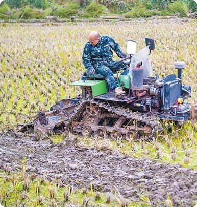 重庆市石柱土家族自治县中益乡的农民驾驶农用机械犁田。新华社记者 唐 奕摄