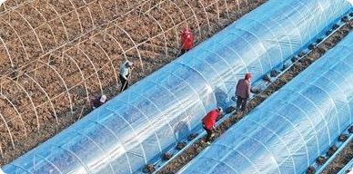 在山东省枣庄市市中区光明路街道丁庄村,农民在搭建蔬菜种植保温棚。孙中喆摄(人民视觉)