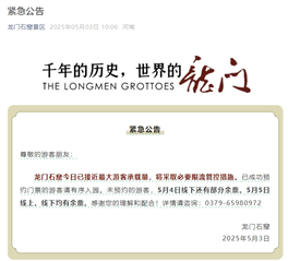 洛阳龙门石窟:5月4日线下还有部分余票
