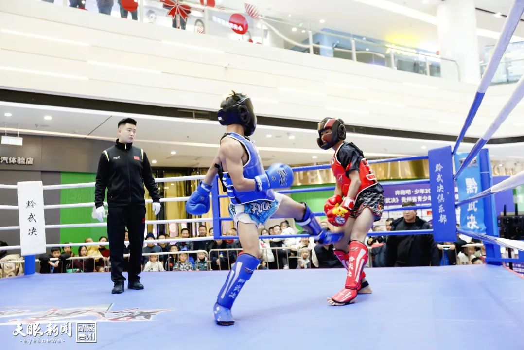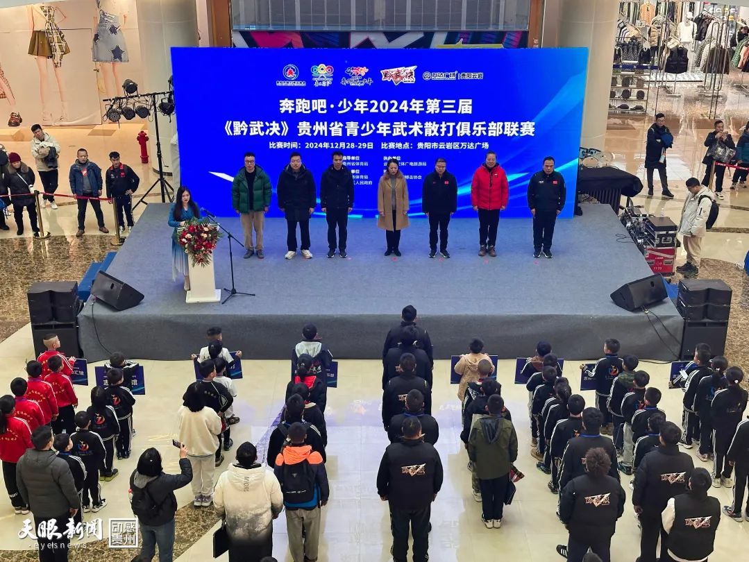 12月28日,“奔跑吧·少年”2024年第三届《黔武决》贵州省青少年武术散打俱乐部联赛在贵阳市云岩万达广场火热开赛,来自贵阳、铜仁、遵义、六盘水、黔东南州、黔西南州等地600余名小选手齐聚一堂,在武术散打舞台上展现实力与风采。