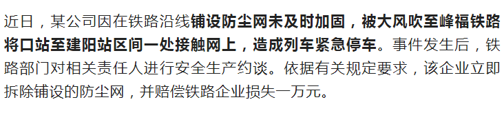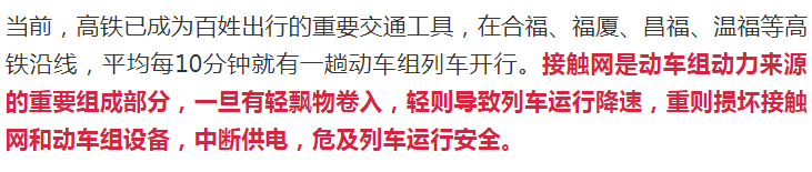 进入春季后,各地纷纷开展春耕备耕工作,塑料大棚、防晒网、防尘网、塑料薄膜等轻飘物极易被大风刮进线路,危及列车运行安全。