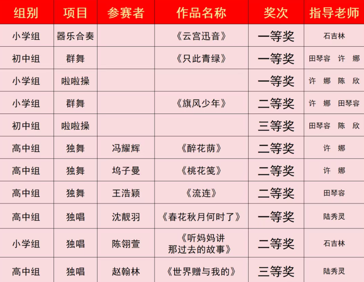在2025年观山湖区第十一届科技体育艺术赛事活动中,五年级学生黄建霖、赵梓薰、肖嘉熙、刘若晗等15人组成的器乐合奏团队,凭借《云宫迅音》荣获器乐类一等奖。这一成绩的背后,是石吉林老师的辛勤付出。课余,他不辞辛劳,带领学生反复练习,精心打磨每一个细节。正是师生们的共同努力与深耕细作,才成就了这场精彩的演奏,展现了观山湖区第十一中学艺术教育的丰硕成果。