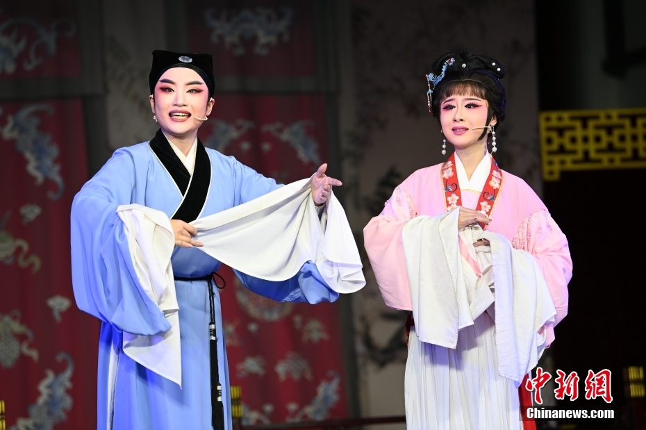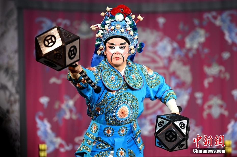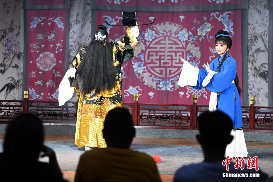 5月12日,福建省漳州市歌仔戏(芗剧)传承保护中心在漳州古城木偶艺术表演馆举办两场歌仔戏(芗剧)公益演出,吸引不少民众前来观赏。歌仔戏(芗剧)是福建省五大剧种之一,与台湾歌仔戏同根同源,一脉相承,于2006年5月被列入首批国家级非物质文化遗产名录。图为芗剧表演:《八大锤》。