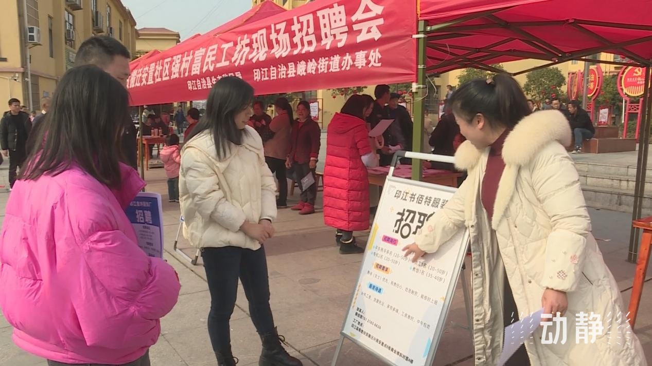 落实就业优先政策。凤冈县、印江土家族苗族自治县为就业困难人员、搬迁群众等重点群体举办招聘会,把岗位送到群众家门口。