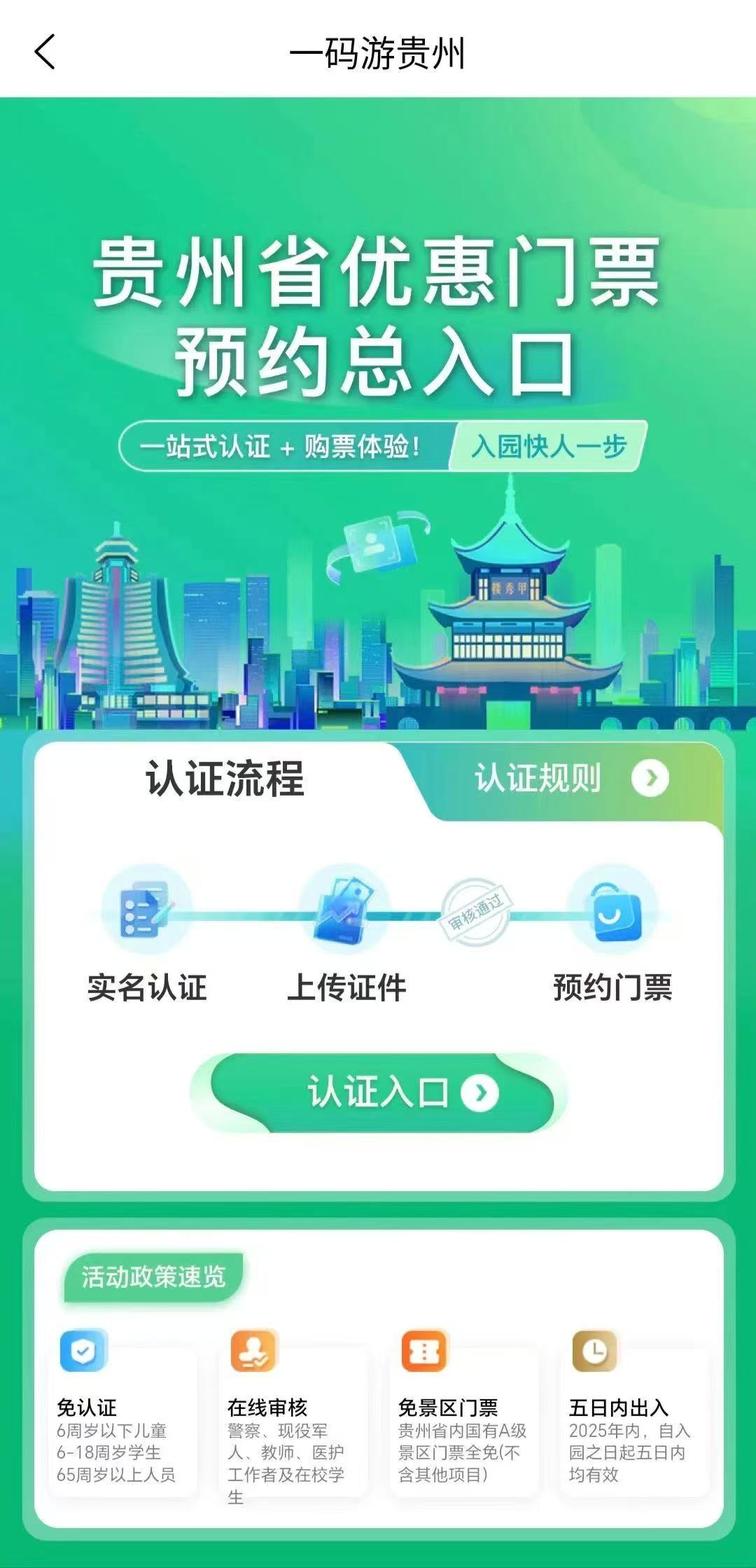 认证通过,直接在线购票,A级景区免门票