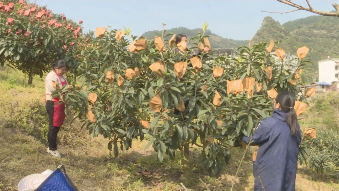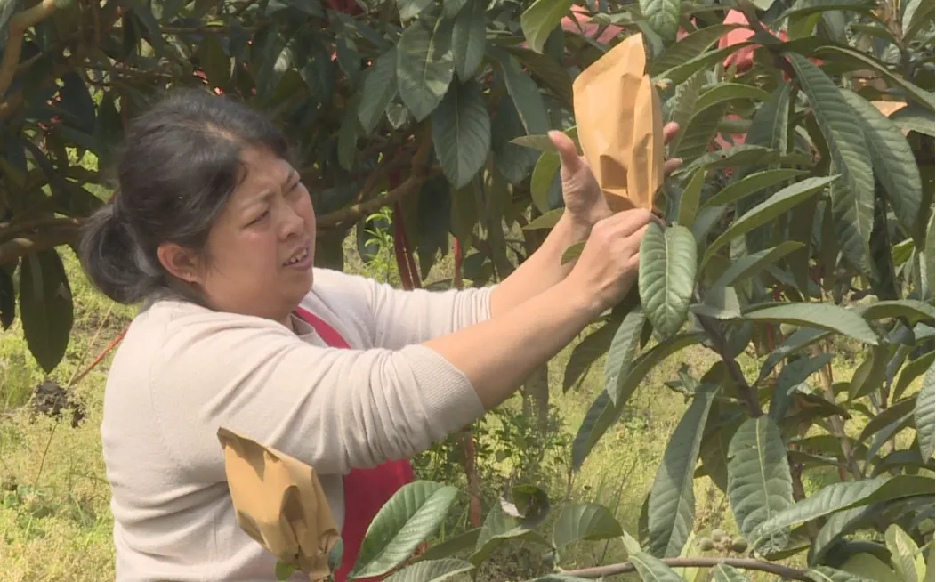 “我已经在这里务工四五年了,当前是把枇杷套袋子,这里离家近可以照顾到家庭,包午饭,一天80元也还可以,能增加家庭的收入。”大坪村村民张琴芳说。