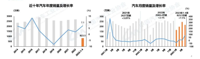 ▲今年1-4月,我国汽车产销分别完成835.5万辆和823.5万辆,同比分别增长8.6%和7.1%。由于去年4月疫情导致生产供应基本停滞,汽车产销一度出现断崖式下跌,同期基数相对较低,今年累计产销实现由负转正。