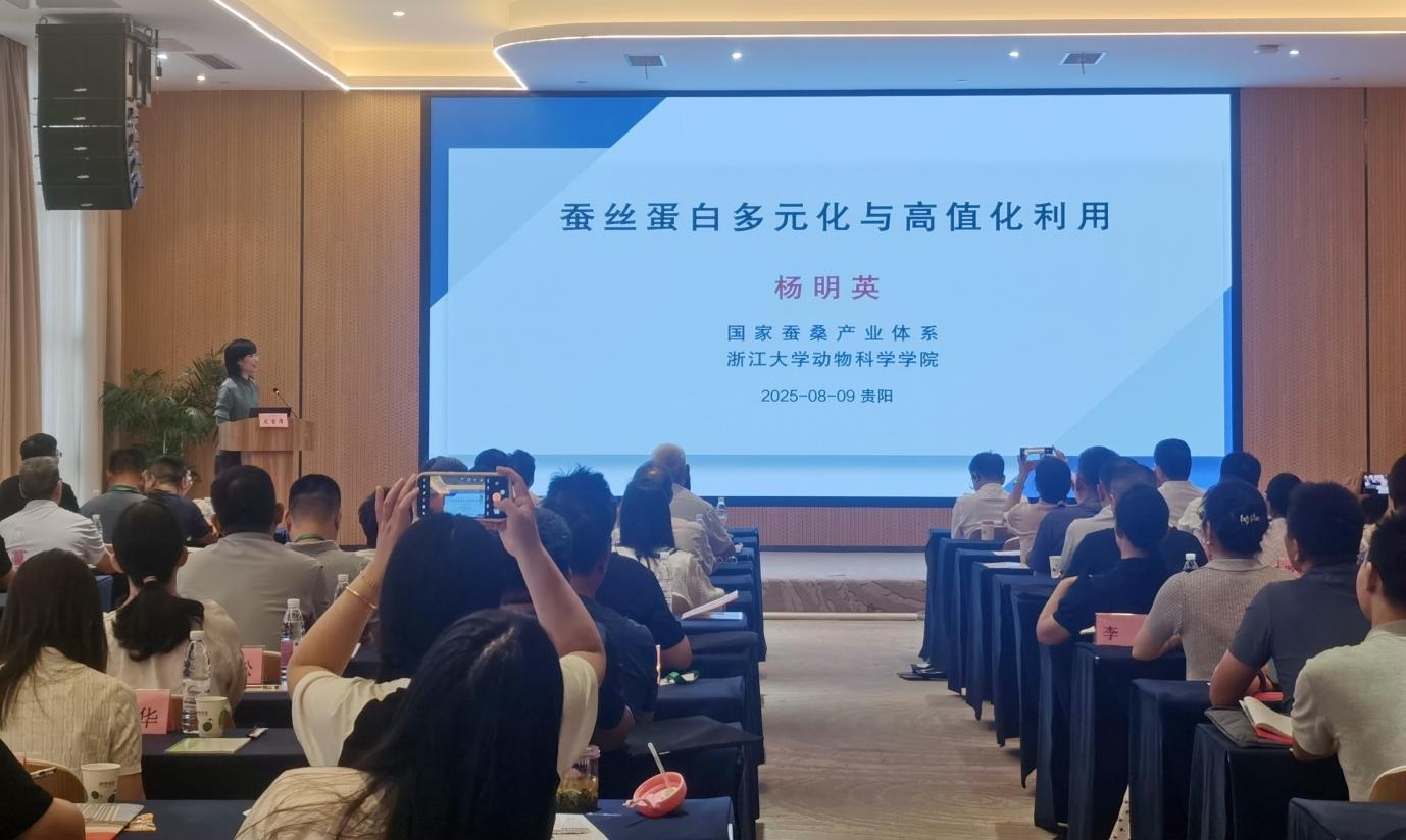 在主题报告环节,浙江大学动物科学学院教授杨明英围绕《蚕丝蛋白多元化和高值化开发》展开阐述,分享了蚕丝蛋白开发的前沿技术与应用前景;广东省农业科学院蚕业与农产品加工所研究员邹宇晓以《功能强化型蚕蛹油结构脂的精准制备、健康效应与应用转化》为题,介绍了蚕蛹油开发的最新成果;贵州大学教授郝俊聚焦《桑树饲料化利用技术研究与产业化》,探讨了桑树在饲料领域的应用潜力。