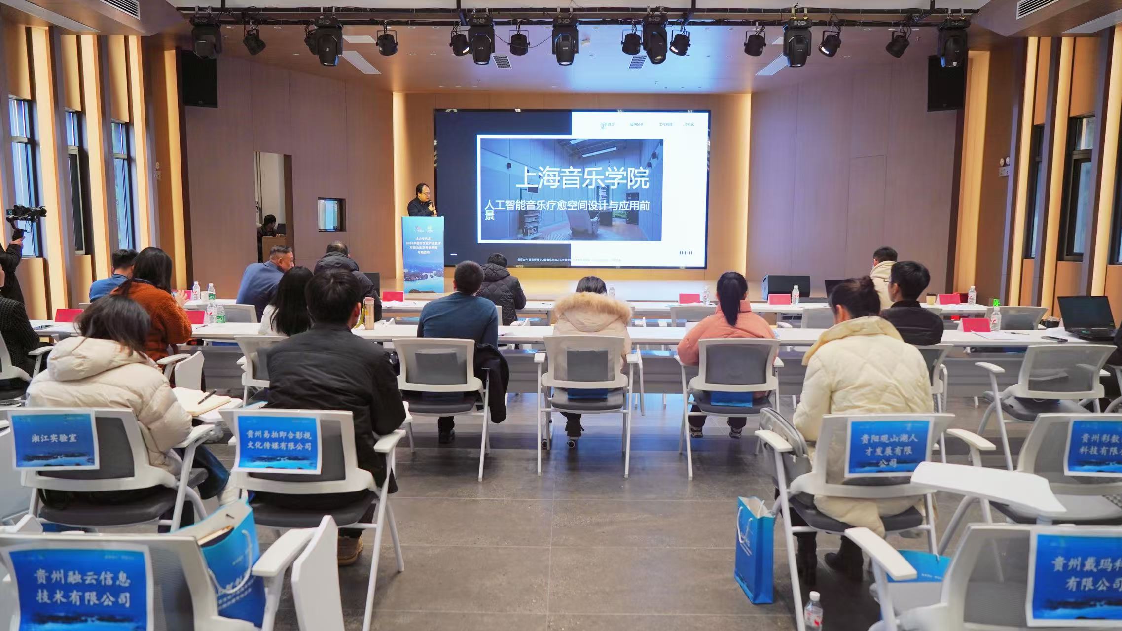 随后,在产业技术对接会上,一系列前沿科技成果集中亮相。贵阳观山湖人才发展有限公司带来了《小兰山数字文化产业生态村落推介》;南京维赛客的 VS・work 元宇宙引擎,将为小兰山打造沉浸式参观场景,提升文旅服务品质;贵州开放大学艺术学院带来的《数字时代与艺术融合发展》主题推介,展现了高校在文化数字化创新中的科研实力;湘江实验室产业化部以《人工智能与先进计算概念验证中心》为主题,带来了前沿的技术推介;上海音乐学院的人工智能音乐疗愈舱,通过 “监测-生成-干预”闭环体系,有望落地研学基地,丰富文旅体验场景;心光纪源的元宇宙全感电影,计划入驻生态村落,成为研学实训的创新环节。贵州多彩新媒体股份有限公司作为本地龙头企业,分享了其在 IPTV 运营、数字文化服务等领域的实践经验,为本土企业数字化转型提供了借鉴。
