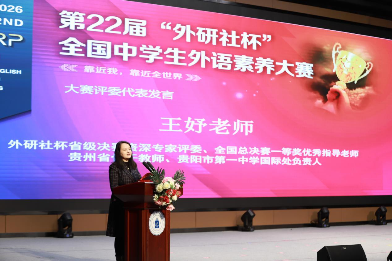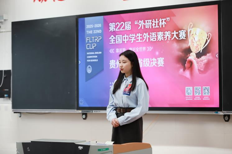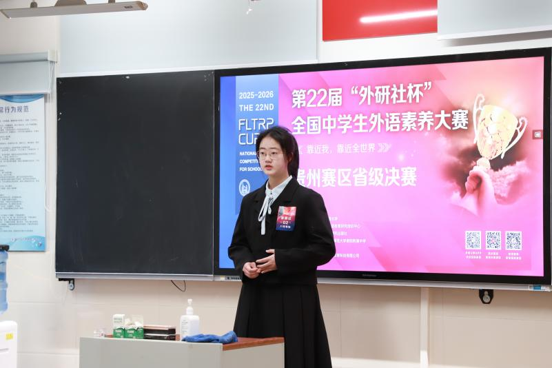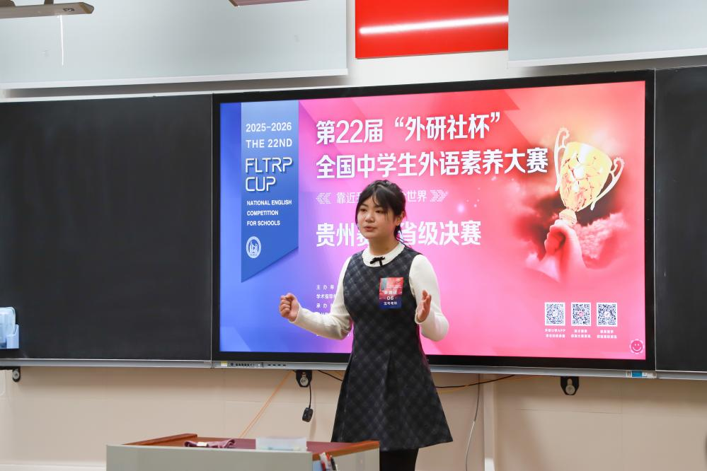 2026年2月7日,第22届“外研社杯”全国中学生外语素养大赛贵州赛区省级决赛在北京师范大学贵阳附属中学成功举办。大赛由北京外国语大学主办、外语教学与研究出版社承办,贵阳北师大附中(高中部)协办,贵州普学教育科技有限公司赞助。大赛融入了“仁者无敌”中华文化思想,传递中华优秀传统文化智慧,展现新时代青少年的外语素养与家国情怀,为全场观众呈现了一场兼具语言之美、思辨之力与人文之韵的精彩赛事。