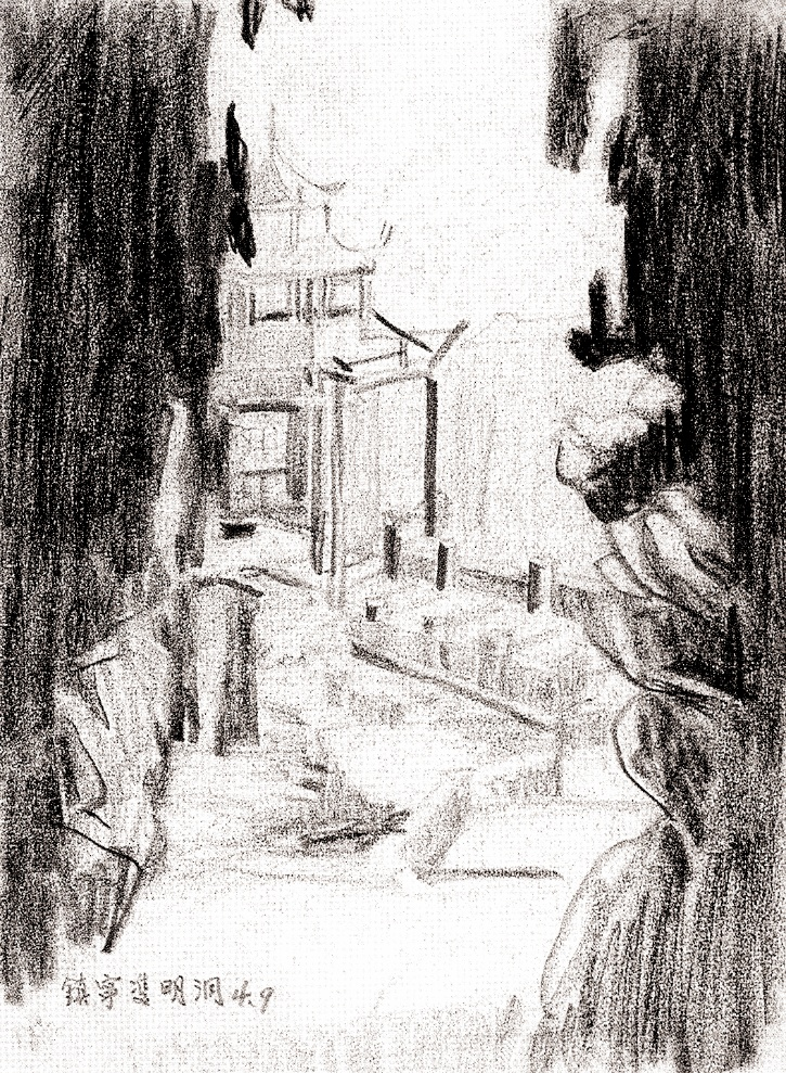 镇宁双明洞。闻一多先生绘于1938年抗日战争爆发“西南联大”南迁途中