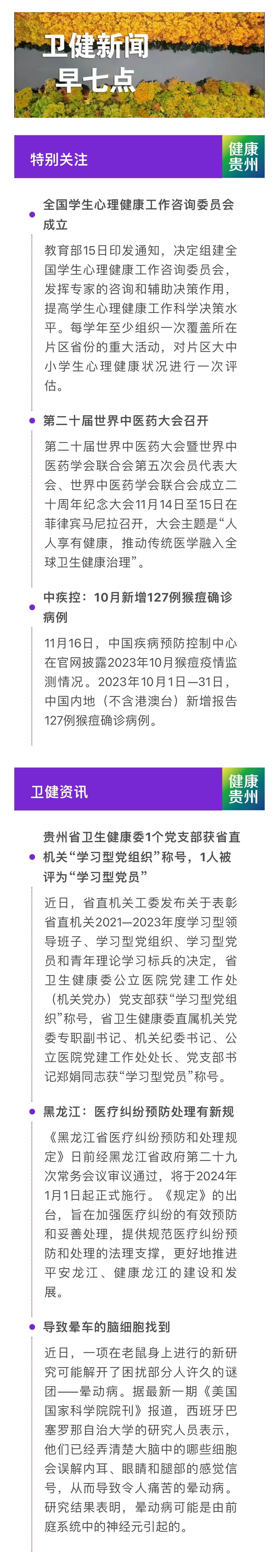 动静健康 | 卫健新闻早7点〔2023.11.17〕