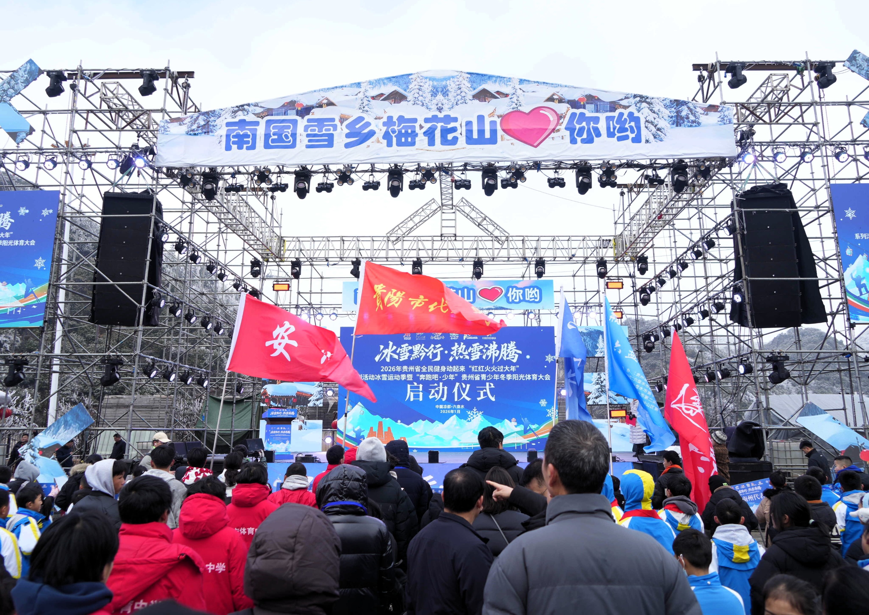 1月23日,2026年贵州省全民健身动起来“红红火火过大年”系列活动冰雪运动季暨“奔跑吧・少年”贵州省青少年冬季阳光体育大会在六盘水梅花山国际滑雪场启动,拉开冬季全民健身热潮序幕。