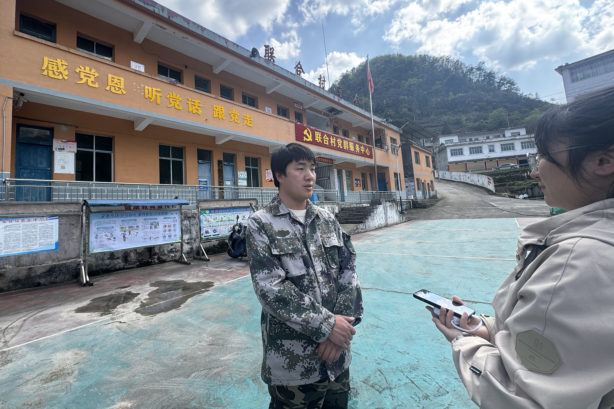 贵州省应急厅派驻联合村的驻村队员潘曦接受采访
