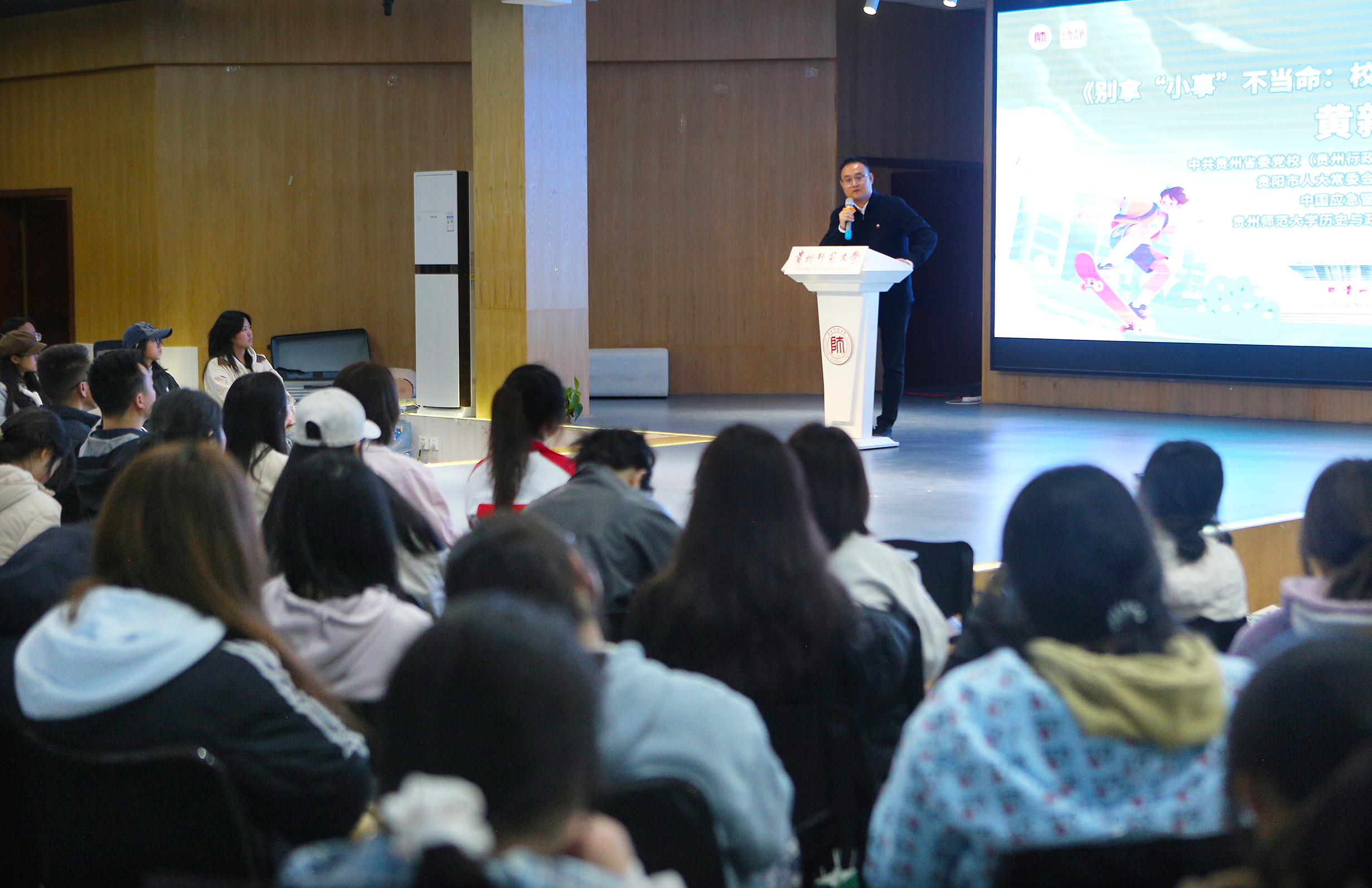 中共贵州省委党校(贵州行政学院)应急管理培训部副教授黄新典作题为《别拿“小事”不当命:校园应急里的公共安全逻辑》的微宣讲 白荧 摄