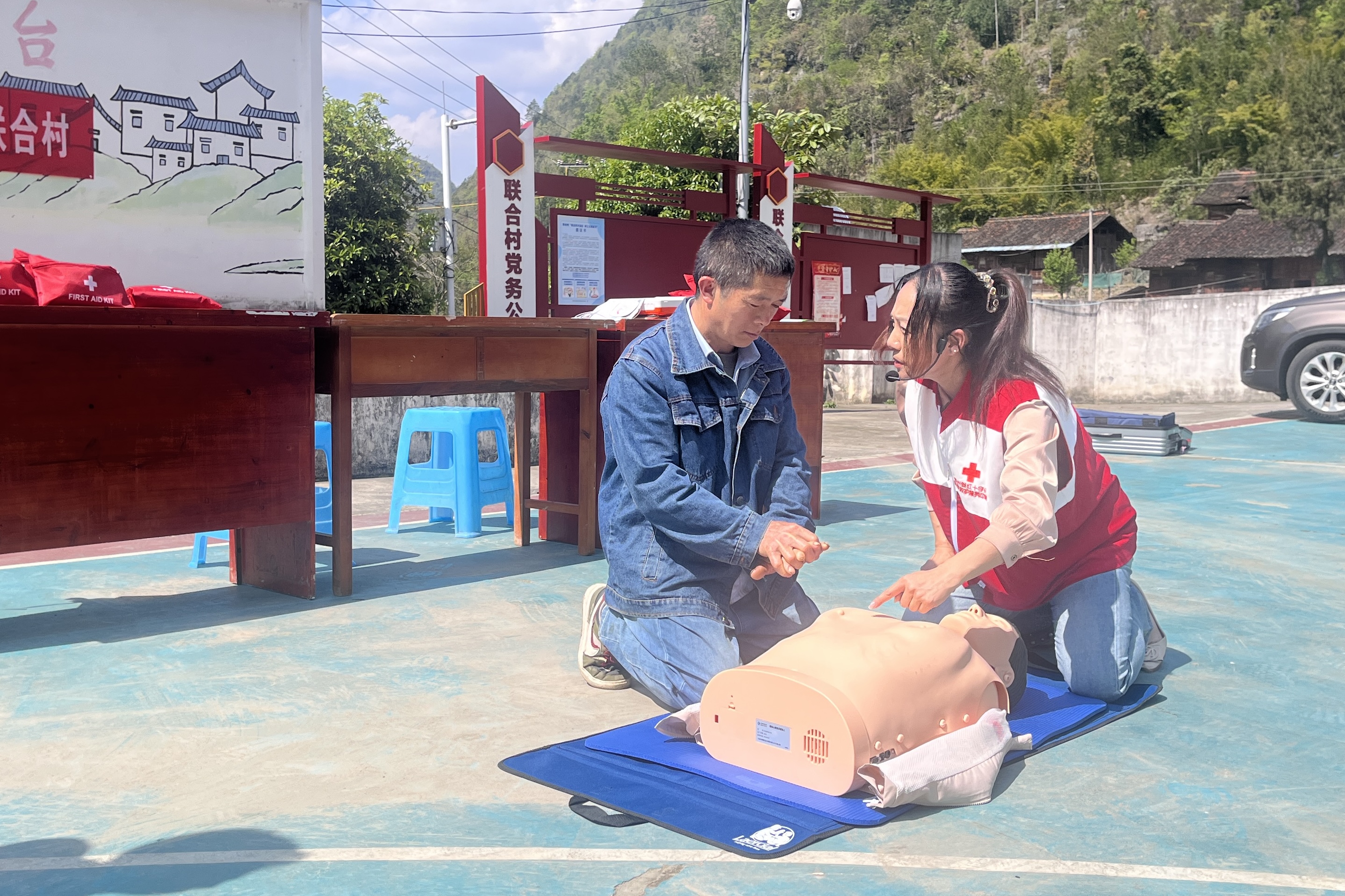 贵州省红十字会应急救护培训专职教师张优为村民们讲解心肺复苏