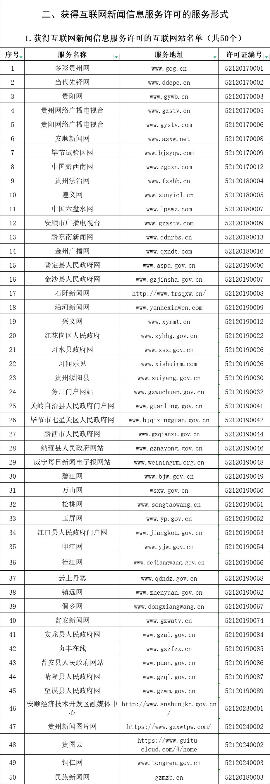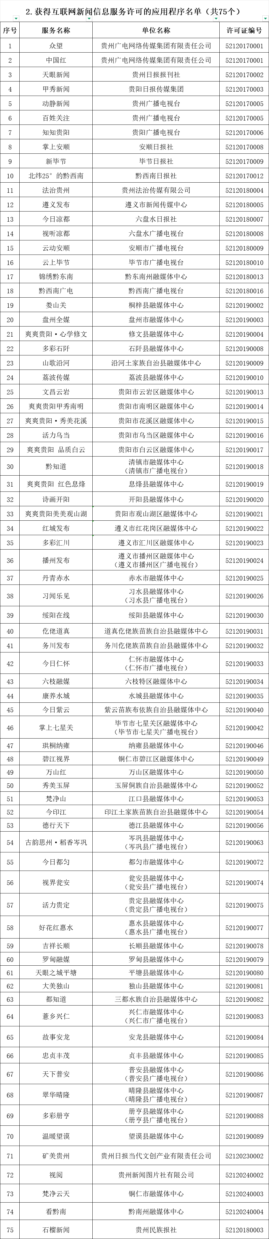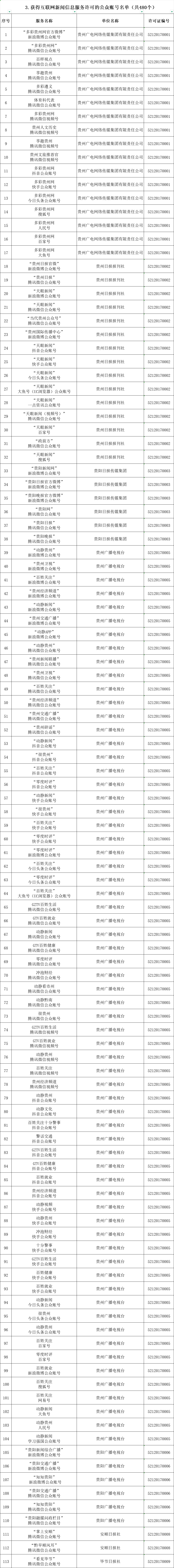 贵州省互联网新闻信息服务单位许可信息