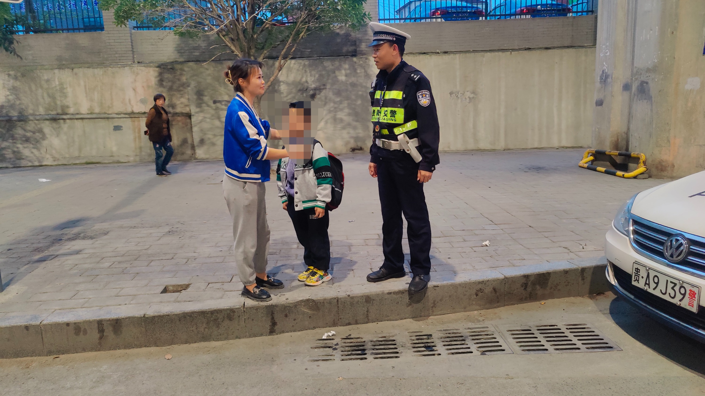 2023年3月22日18时30分,贵阳市公安交通管理局南明区分局七中队民警任海在花果园中央公园路口接到群众求助,称身边的男孩迷路了希望交警能帮助联系其家长。民警立即将小男孩带上警车,并安抚其情绪后询问小男孩得知其是贵溪路小学的学生,家住营盘路,平时都是父母开车接送,当天是自己第一次尝试乘坐公交上放学,放学后坐错了公交车到花果园迷路。