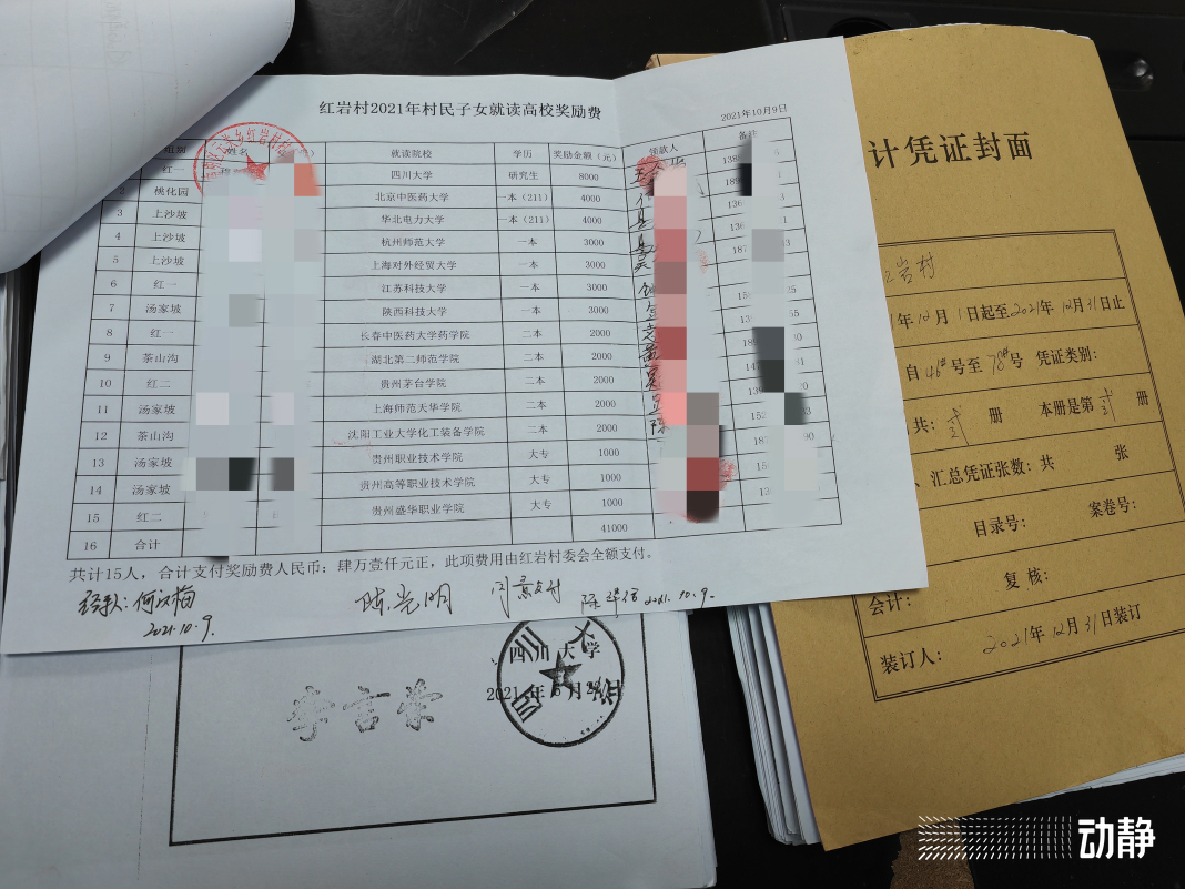 同时,红岩村每年还对村里考上大学的学生给予1000元到8000元的奖励。“我们会根据学校的类别和学历高低来进行奖励,比如考上985高校的、比如考上研究生奖励就高一点。村里想通过这种方式鼓励大家提升知识文化水平。”红岩村村委会会计何汉梅说。
