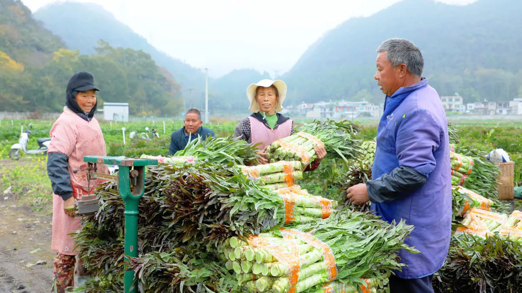 该基地由贵州蔬菜集团农业科技发展有限公司投资建设,面积为1400亩,通过轮茬复种的形式,可实现蔬菜种植4200亩,主要种植以菜心为主的多品种蔬菜,种植时间为每年9月至次年4月左右,可有效错开全国主产区同品类蔬菜上市时间,既能弥补市场供应短缺,又利于稳定蔬菜价格,提高种植效益。“单价还可以,2元至5元都在卖,发往广东深圳、大湾区等地。”潘登美说。