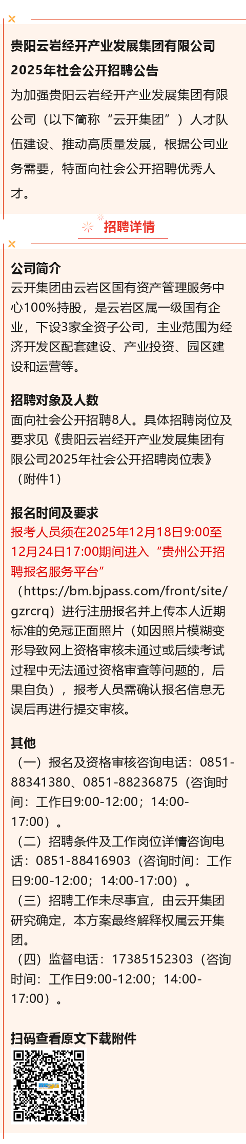 【国企】贵阳云岩经开产业发展集团有限公司招聘!报名截止时间:12月24日!