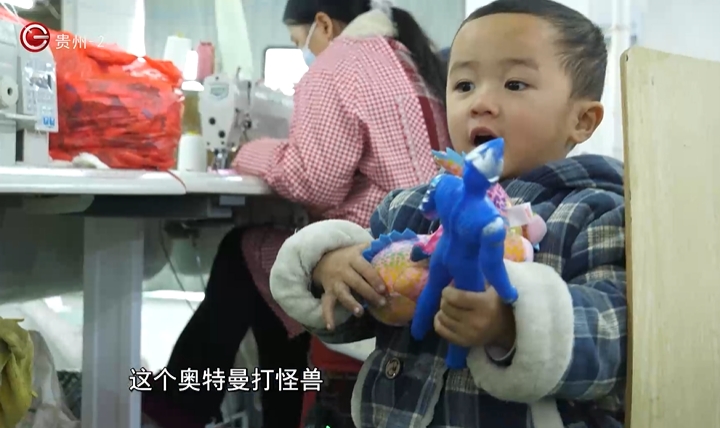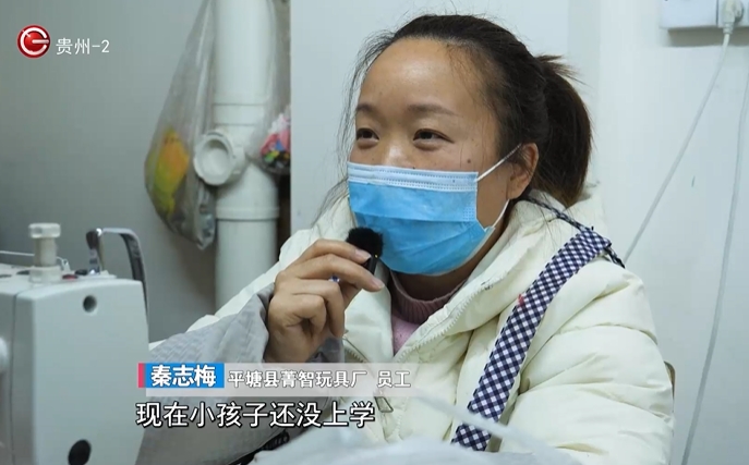 平塘县菁智玩具厂员工秦志梅:我经常带小孩上班,我在这里工作多久,她就陪我多久。