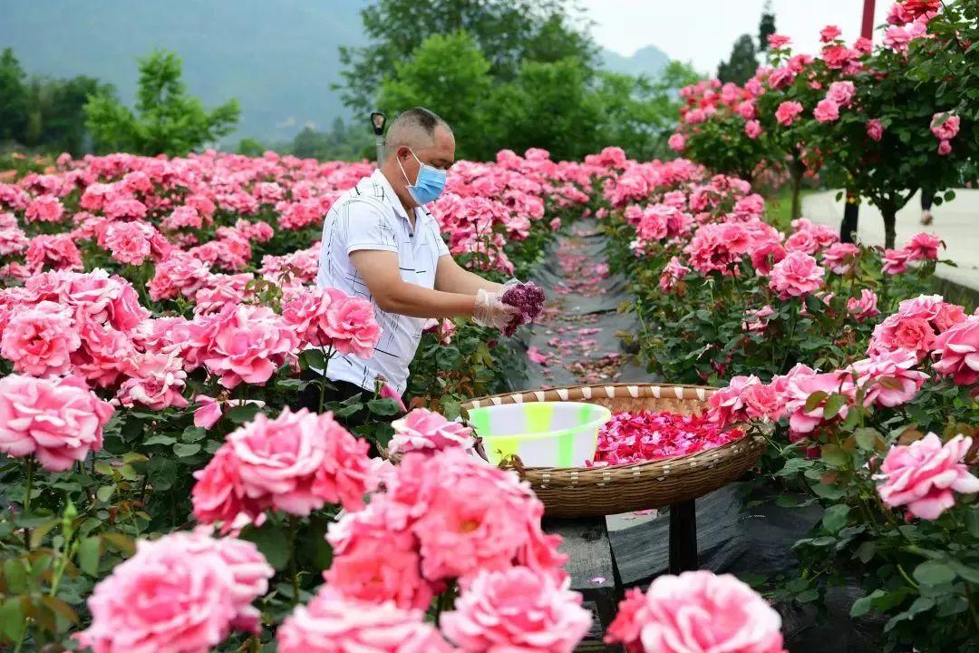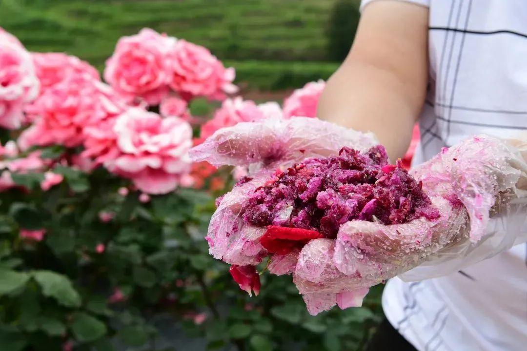 花农为游客加工新鲜的玫瑰糖