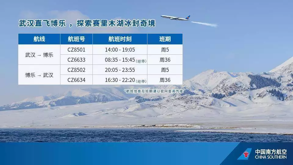 新增直飞航线,联通华中与全国冰雪胜地。冬航季,南航优化武汉出发至多个冰雪城市的航线布局。新疆方向,新开武汉直飞阿勒泰航线,每周2班;武汉至乌鲁木齐直飞航线每日3-4班,武汉至博乐航线每周2班。东北方向,优化武汉至哈尔滨、长春、沈阳、乌兰浩特等地航班频次,2月2日起,计划开通武汉至长白山直飞航班,每周一、三、五各一班。“冰雪航线网”有效串联起湖北与全国冬季旅游资源,为本地旅客提供更加丰富、便捷的出行选择。