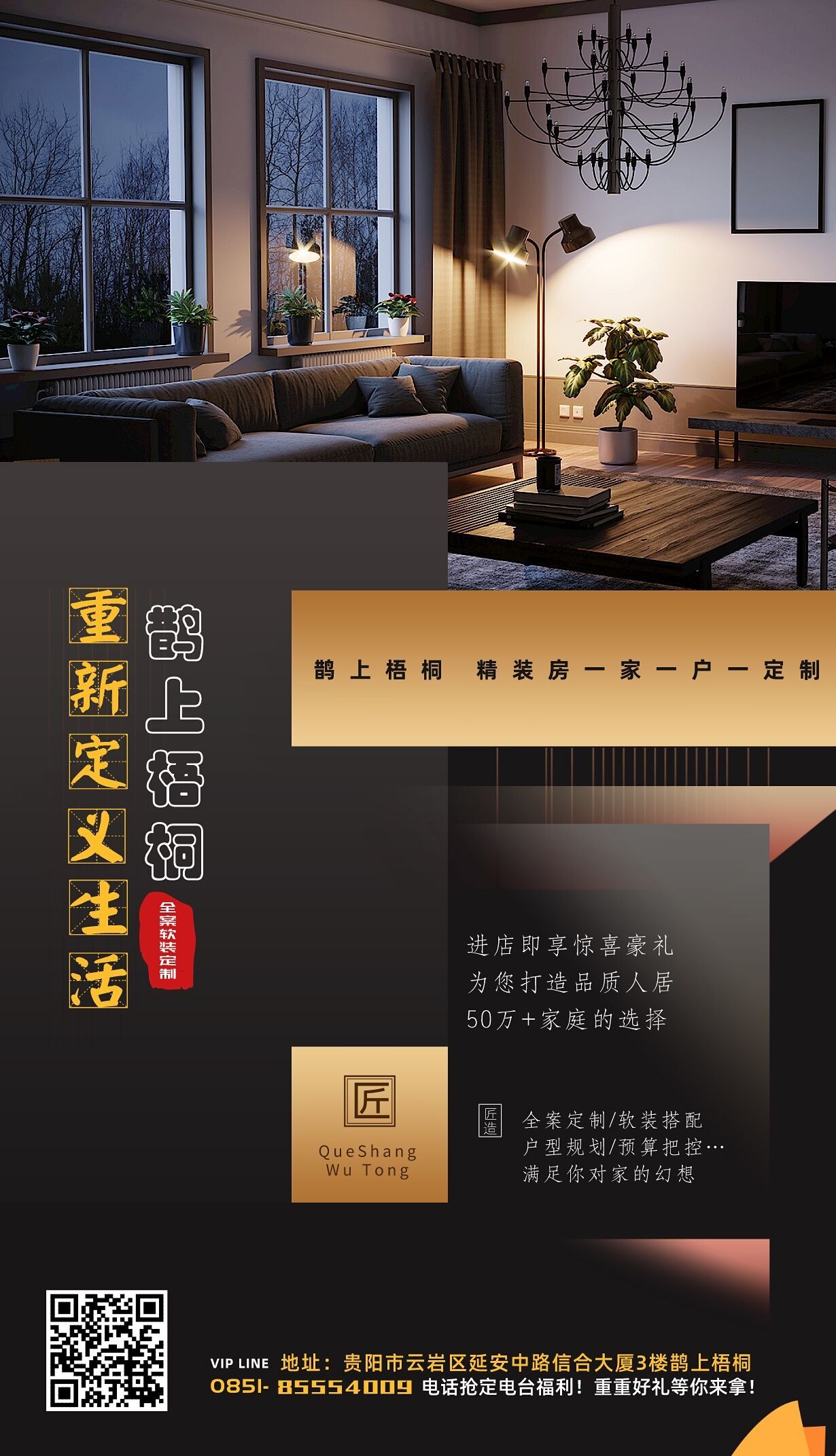 以下活动最终解释权归鹊上梧桐所有。详情请咨询电话0851-85554009。还有更多惊喜,亲自去到鹊上梧桐全案软装定制探索体验你的家居专属品质魅力吧!
